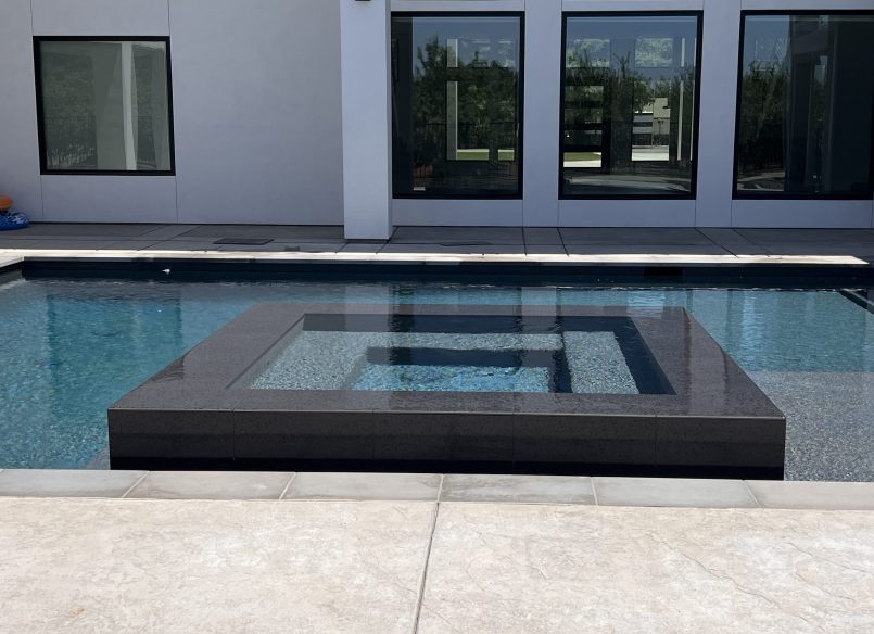 Unique spa details are designed to make your spa more modern. The glass or porcelain tiles on the spa beam makes it a more timeless design feature. The spa has split-level benches for all family member enjoyment.